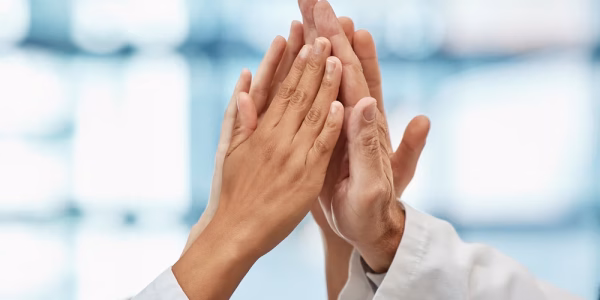 Hands,,Doctors,And,High,Five,In,Celebration,With,Support,For