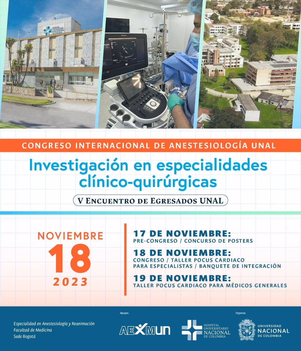 La Facultad de Medicina de la Universidad Nacional de Colombia se complace en anunciar su próximo congreso internacional, enfocado en la investigación en especialidades clínico-quirúrgicas, del 17 al 19 de noviembre de 2023. Este encuentro académico será una oportunidad única para enriquecer el conocimiento y las habilidades en el campo