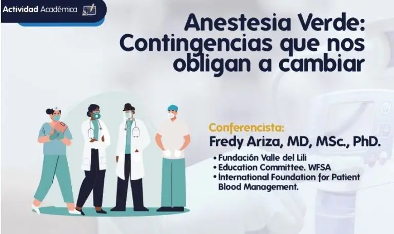 Este jueves 28 de julio de 2022 a las 7:50 p.m. la Sociedad Cundinamarquesa de Anestesiología estará llevando a cabo la actividad académica Anestesia verde: contingencias que nos obligan a cambiar, un encuentro que tiene como invitado al Dr. Freddy Ariza, anestesiólogo de trasplantes y cirugía mayor de la Fundación Valle del Lili.