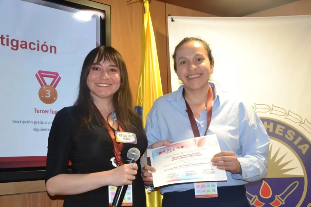 - El segundo lugar reconoció el trabajo de Sara Moreno, Sara Orrego, Verónica del Mar Munera, Juan Pablo Castellanos, Andrea Sierra, José Hugo Arias y Daniel Valencia, con el proyecto “Caracterización de la presentación clínica de la intoxicación por anestésicos locales en pacientes llevados a bloqueos de fascia: una revisión sistemática”.