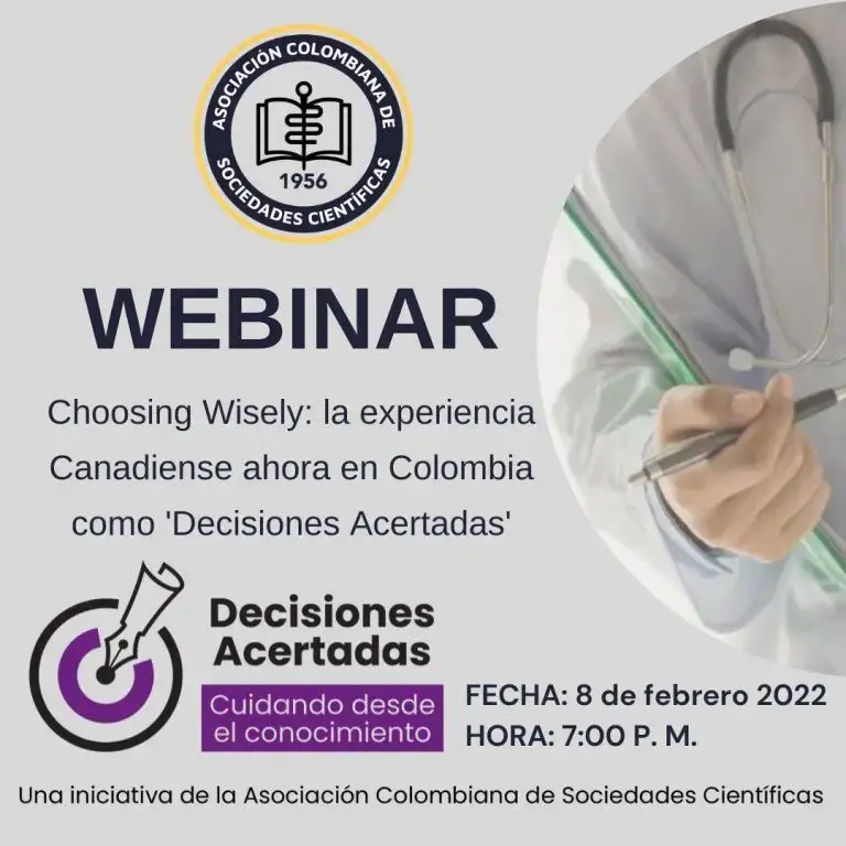 El próximo martes 8 de febrero a las 7:00 p.m. la Asociación Colombiana de Sociedades Científicas, llevará a cabo el webinar “Choosing Wisely: la experiencia canadiense ahora en Colombia como Decisiones Acertadas”.