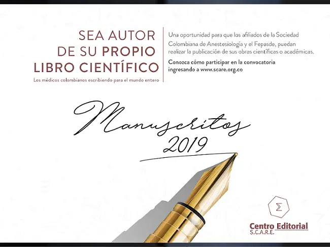 La Sociedad Colombiana de Anestesiología y Reanimación, extiende la convocatoria de Manuscritos 2019, para que profesionales de la salud afiliados a la S.C.A.R.E., publiquen sus obras originales de carácter científico o académico. La convocatoria se extenderá hasta el próximo 28 de enero.