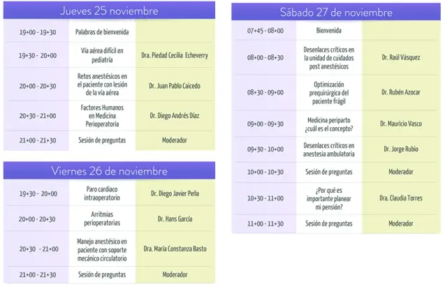 Recuerde que el evento iniciará el día jueves 27 de noviembre a las 7:00 p.m. A continuación, el programa académico: