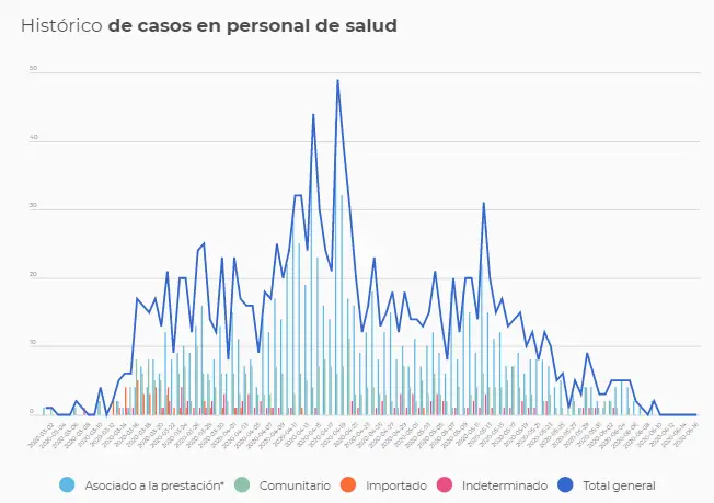 A continuación se relaciona la curva del histórico de casos presentados en el personal de la salud.